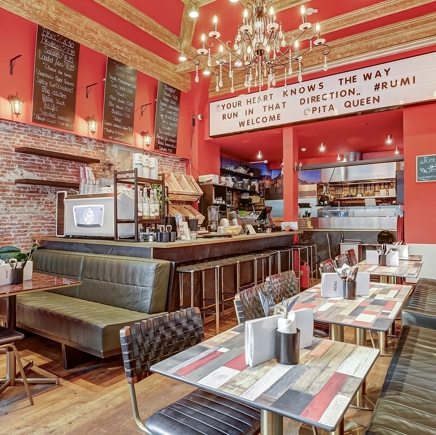 Horecaruimte (“horeca-4”) op begane grond 61 m2, kelder (opslag, wc en kantoor) 60 m2.